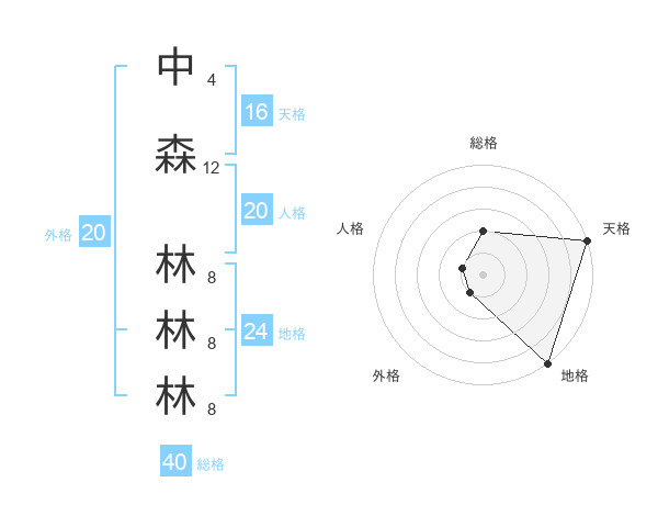 中森 林林林さんの総格は40画の2点!