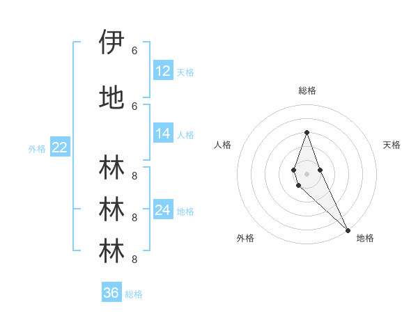 伊地 林林林さんの総格は36画の3点