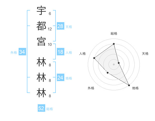 宇都宮 林林林さんを姓名の画数から五運を鑑定