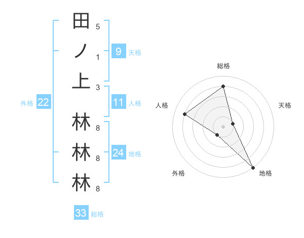 田ノ上 林林林さんの総格は33画の4点