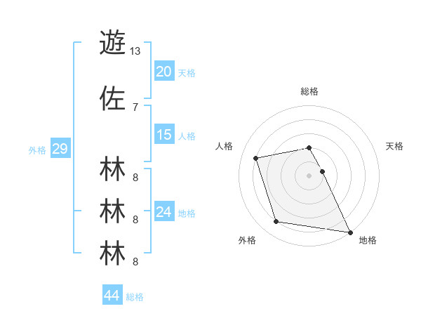 遊佐 林林林さんの総格は44画の2点!