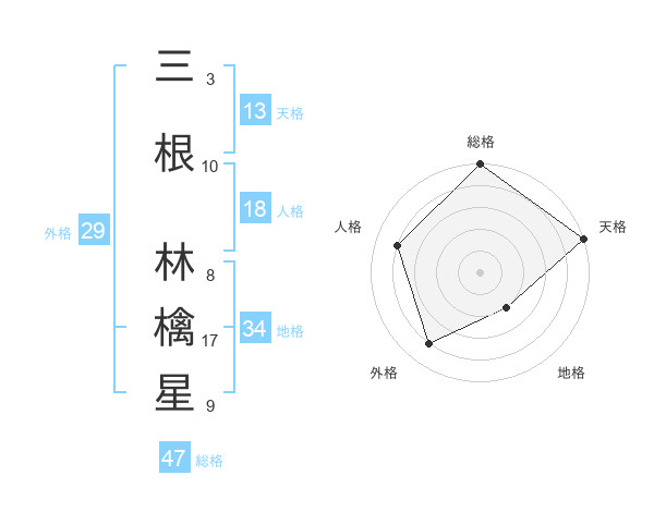 三根 林檎星さんの総格は47画の5点!
