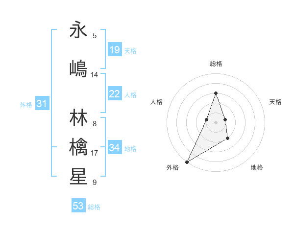 永嶋 林檎星さんを姓名の画数から五運を鑑定