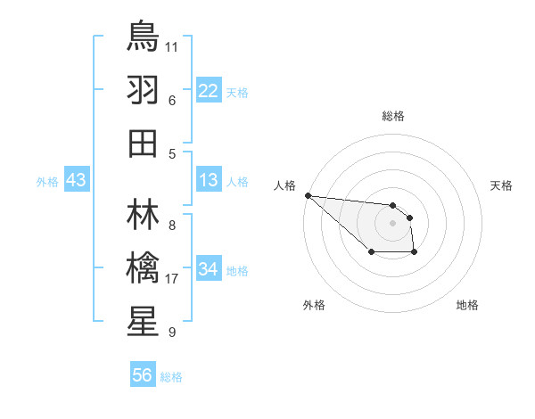 鳥羽田 林檎星さんを姓名の画数から五運を鑑定