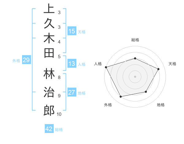 上久木田 林治郎さんを姓名の画数から五運を鑑定