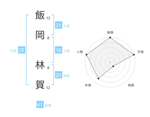 飯岡 林賀さんを姓名の画数から五運を鑑定