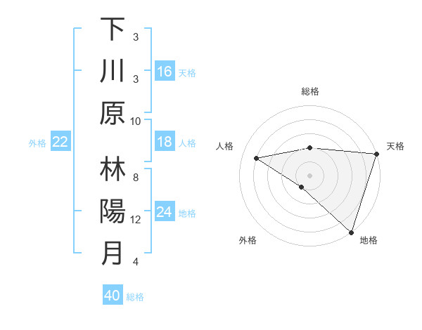 下川原 林陽月さんを姓名の画数から五運を鑑定