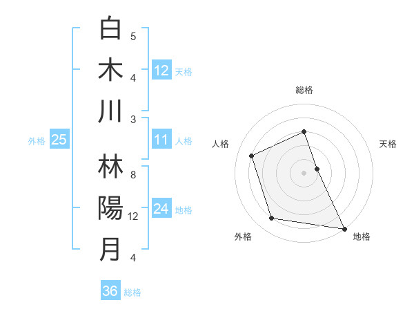 白木川 林陽月さんを姓名の画数から五運を鑑定