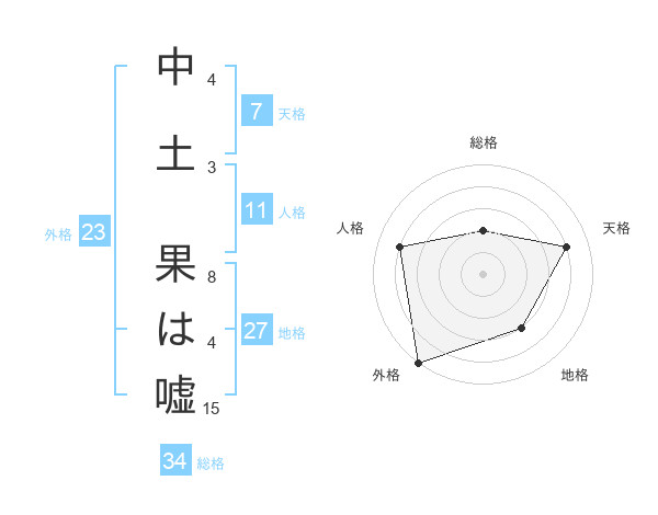 中土 果は嘘さんを姓名の画数から五運を鑑定