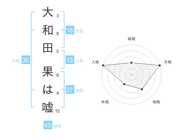 大和田 果は嘘さんを姓名の画数から五運を鑑定