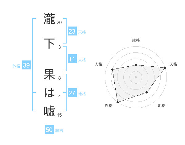 瀧下 果は嘘さんを姓名の画数から五運を鑑定