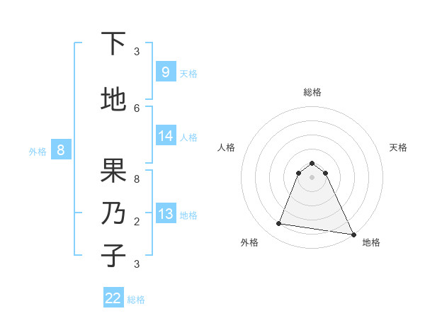 下地 果乃子さんを姓名の画数から五運を鑑定