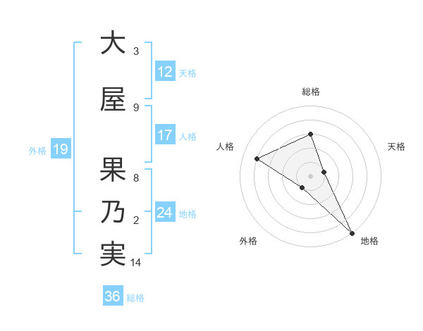 大屋 果乃実さんの地格は24画の5点!