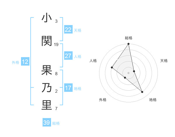 小関 果乃里さんの総格は39画の5点!