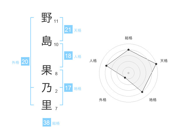 野島 果乃里さんの総格は38画の4点!
