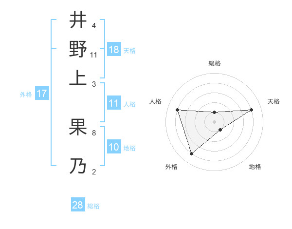 井野上 果乃さんを姓名の画数から五運を鑑定