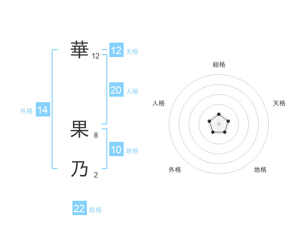 華 果乃さんの総格は22画の1点!