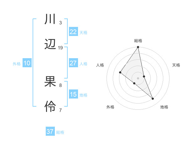 川辺 果伶さんの総格は37画の5点!
