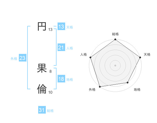 円 果倫さんの天格は13画の5点!