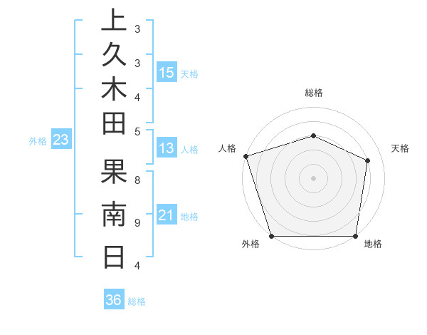 上久木田 果南日さんの外格は23画の5点!
