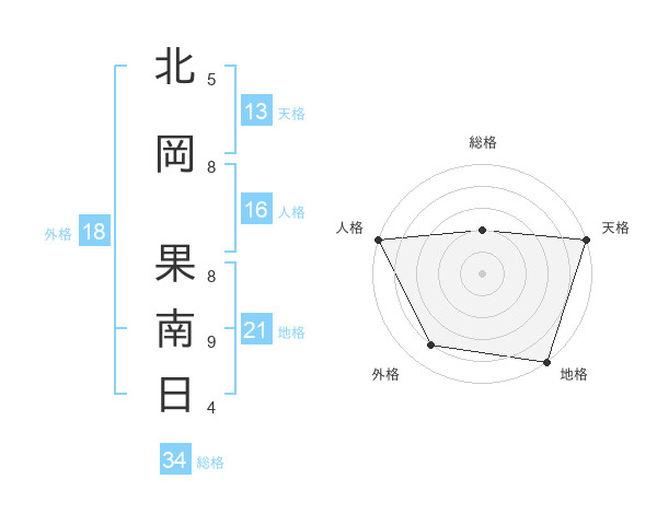 北岡 果南日さんの天格は13画の5点!