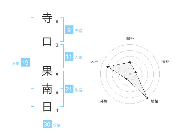 寺口 果南日さんを姓名の画数から五運を鑑定