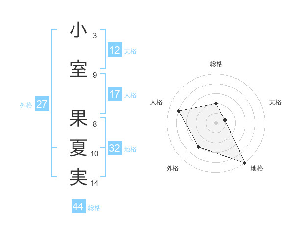 小室 果夏実さんを姓名の画数から五運を鑑定