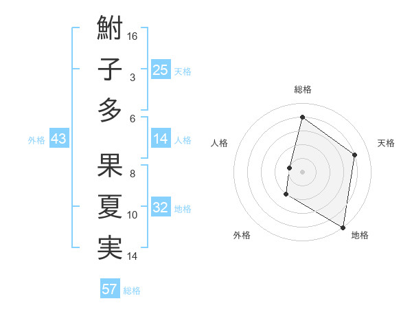 鮒子多 果夏実さんを姓名の画数から五運を鑑定
