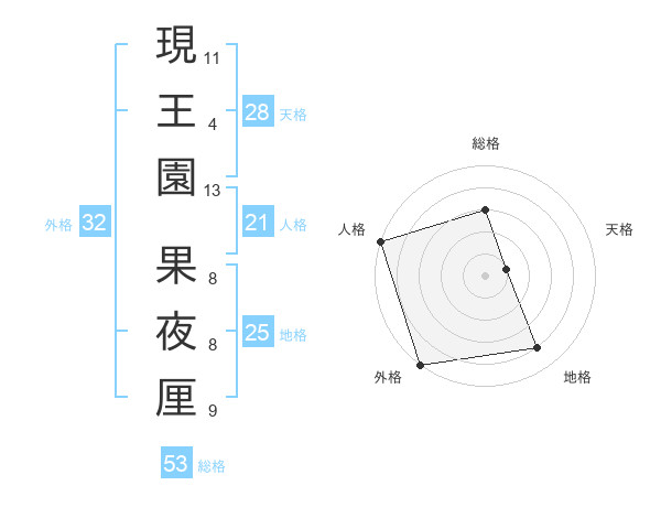 現王園 果夜厘さんを姓名の画数から五運を鑑定