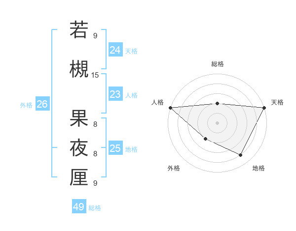 若槻 果夜厘さんを姓名の画数から五運を鑑定