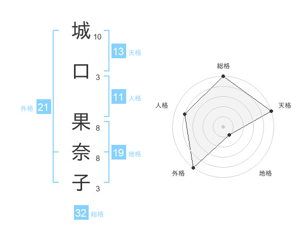 城口 果奈子さんの総格は32画の5点!