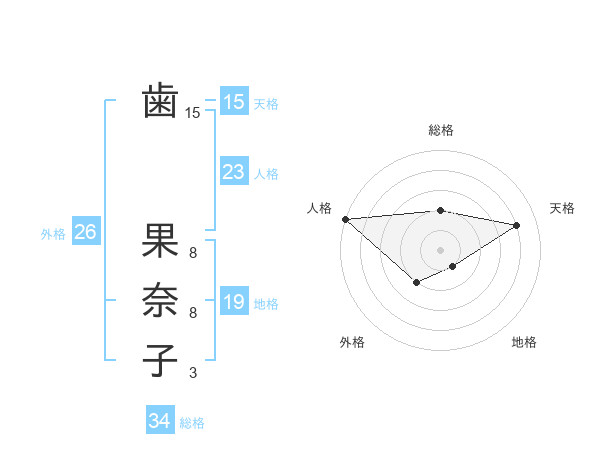 歯 果奈子さんの天格は15画の4点!