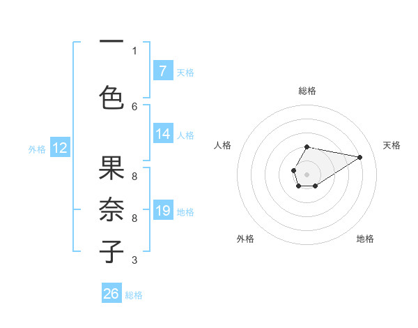 一色 果奈子さんを姓名の画数から五運を鑑定