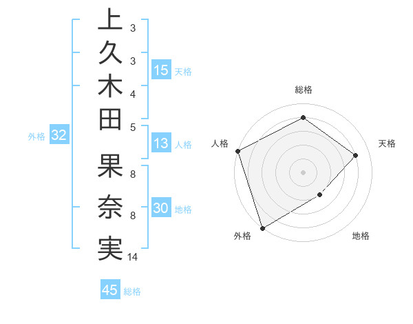 上久木田 果奈実さんを姓名の画数から五運を鑑定