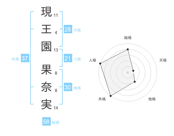 現王園 果奈実さんを姓名の画数から五運を鑑定