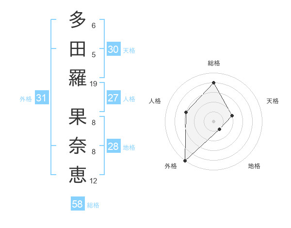 多田羅 果奈恵さんを姓名の画数から五運を鑑定
