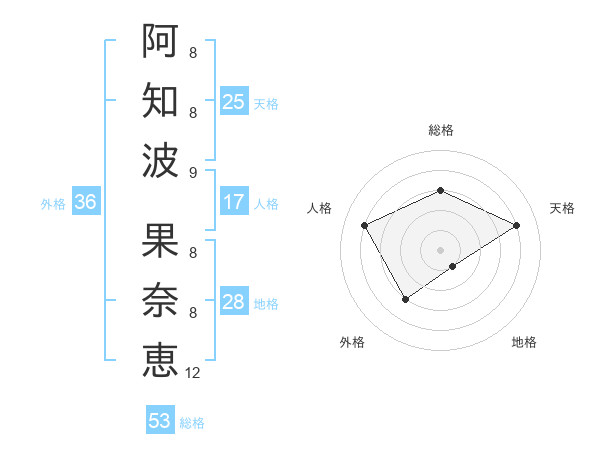 阿知波 果奈恵さんを姓名の画数から五運を鑑定