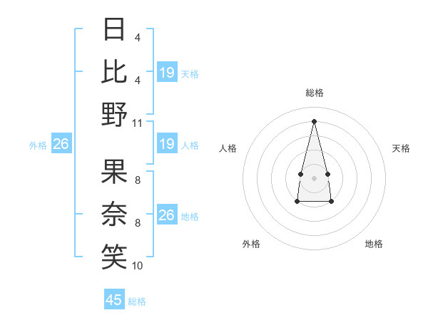 日比野 果奈笑さんの総格は45画の4点!