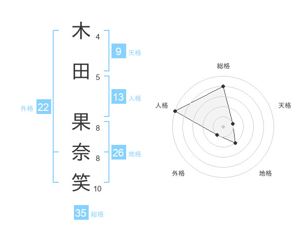 木田 果奈笑さんを姓名の画数から五運を鑑定