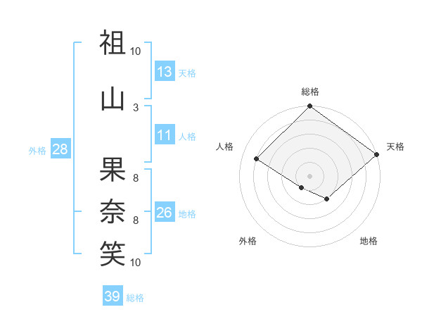 祖山 果奈笑さんを姓名の画数から五運を鑑定