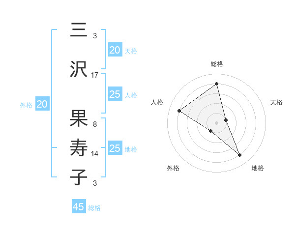 三沢 果寿子さんを姓名の画数から五運を鑑定