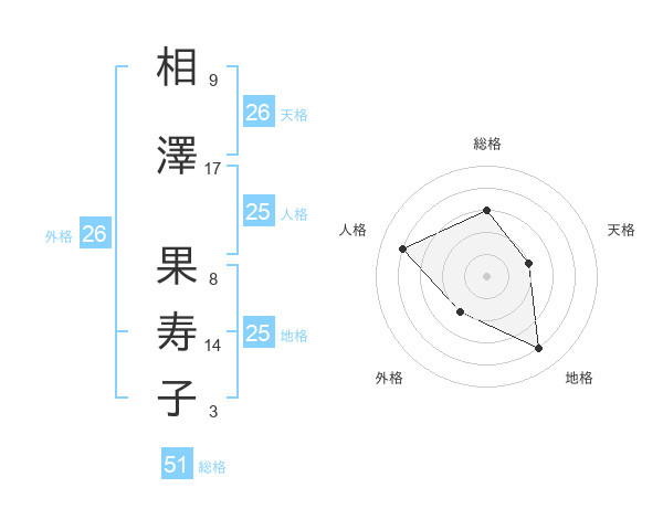 相澤 果寿子さんの総格は51画の3点!