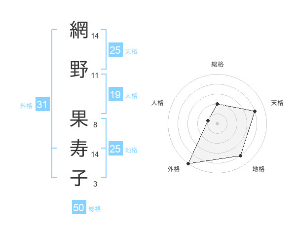 網野 果寿子さんを姓名の画数から五運を鑑定