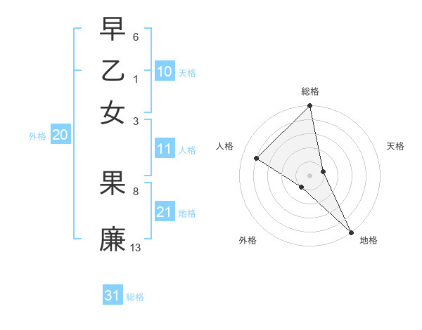 早乙女 果廉さんを姓名の画数から五運を鑑定