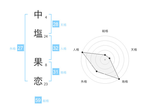 中塩 果恋さんを姓名の画数から五運を鑑定