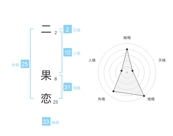 二 果恋さんの総格は33画の4点!