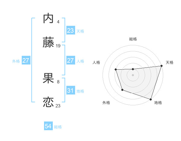 内藤 果恋さんの地格は31画の5点!