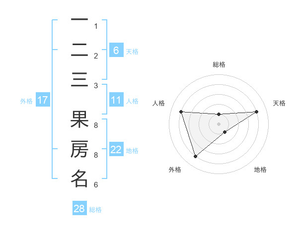 一二三 果房名さんを姓名の画数から五運を鑑定