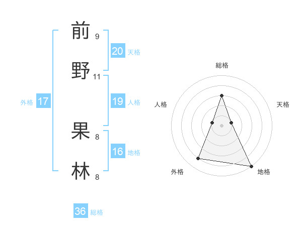 前野 果林さんの天格は20画の1点!
