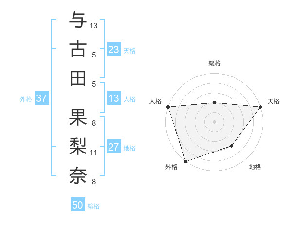 与古田 果梨奈さんの外格は37画の5点!